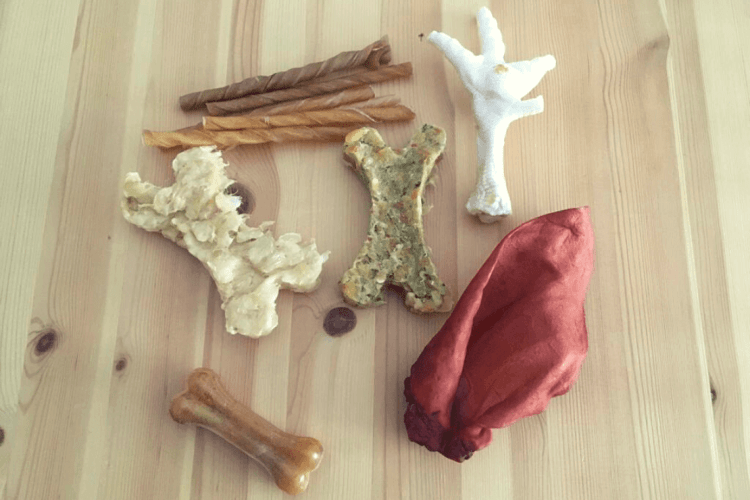 Me decidí por unos dos huesos, uno para ayudarle a la digestión y otro para las articulaciones, otro hueso y unos palitos para la mordida, una oreja de cerdo y tambie´n nos llevamos a casa una pata de pollo.